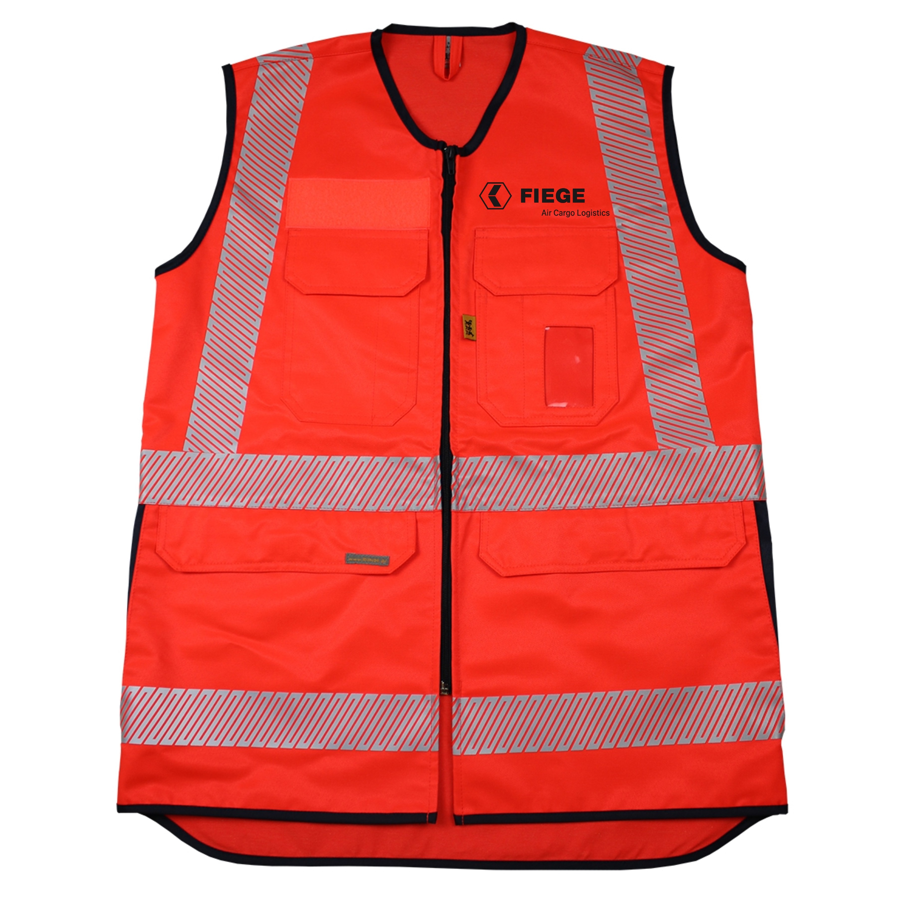 Sommer-Warnweste , warnrot, mit Brusttaschen, 2xSegment-Reflex, Patchabz.*Fiege Air Cargo Logistics*