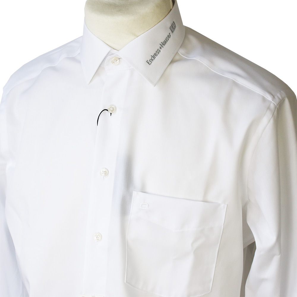 Oberhemd Luxor, 1/1 Arm, weiß, modern fit >Endress + Hauser<, 1fbg. silber ca. 7,5x1 cm