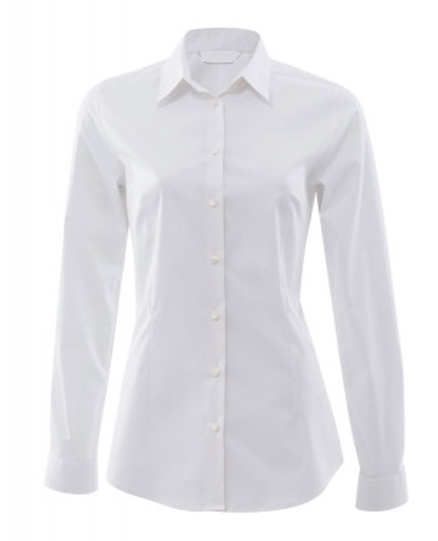 Sportliche Stretchbluse mit Abnähern im Vorder- und Rückenteil, zwei Rückenlängen, gerundeter Saum.