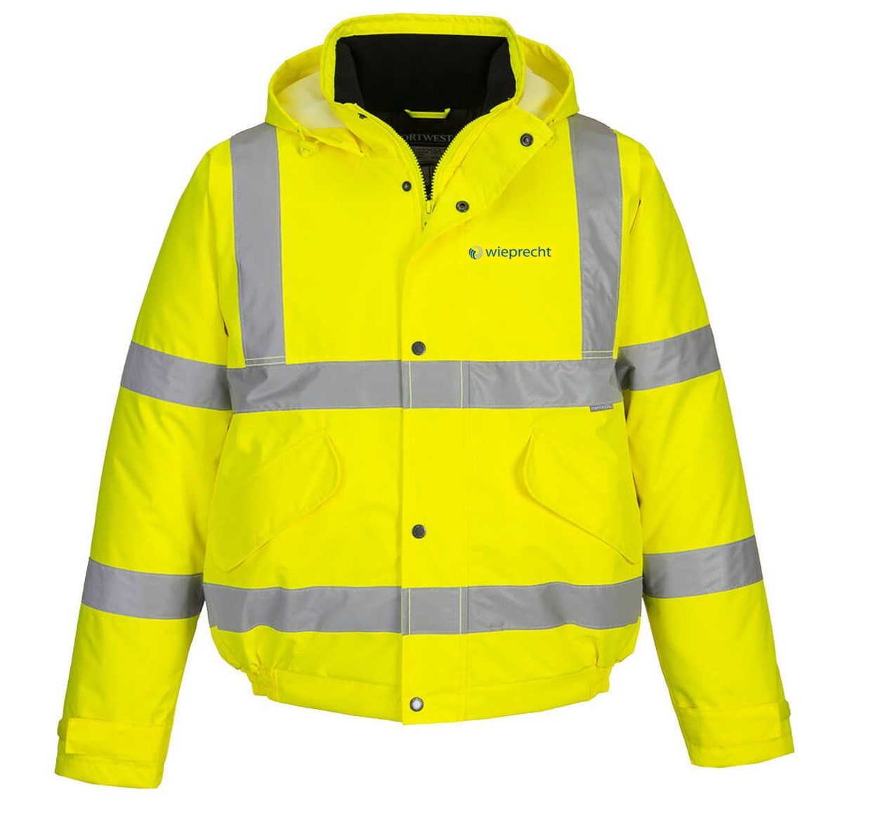 Warnschutz Winter Pilotjacke, gelb, inkl. Logo Wieprecht vorne und Rücken