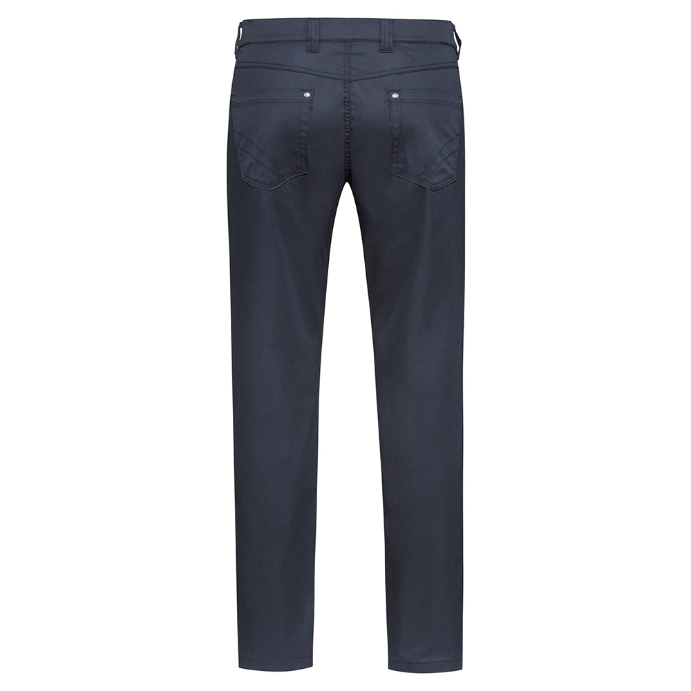 Hose 5-Pocket, marine, Einstickung >Olympus< weiß/gelb ca. 7x1,4 cm