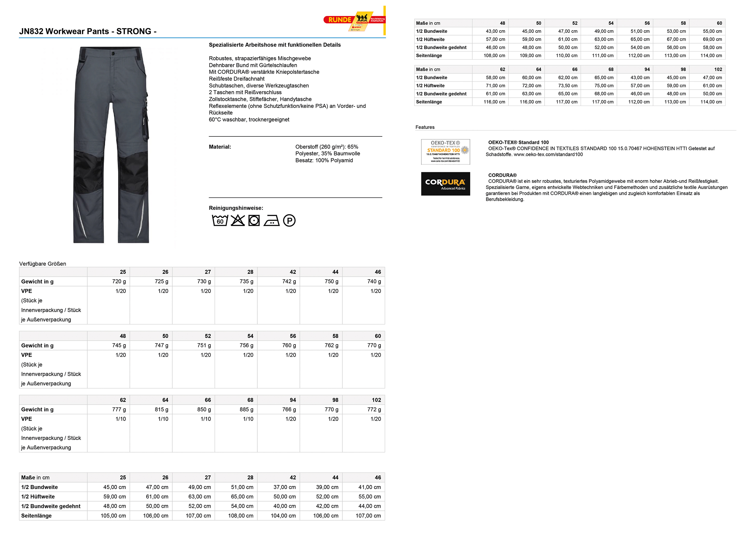Größen: 42-62, 94-110, 25-28