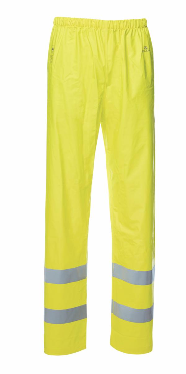 Warnschutzregenhose-SecureTech, Elastik im Bund, Druckknöpfe am Bein, Multinorm PU