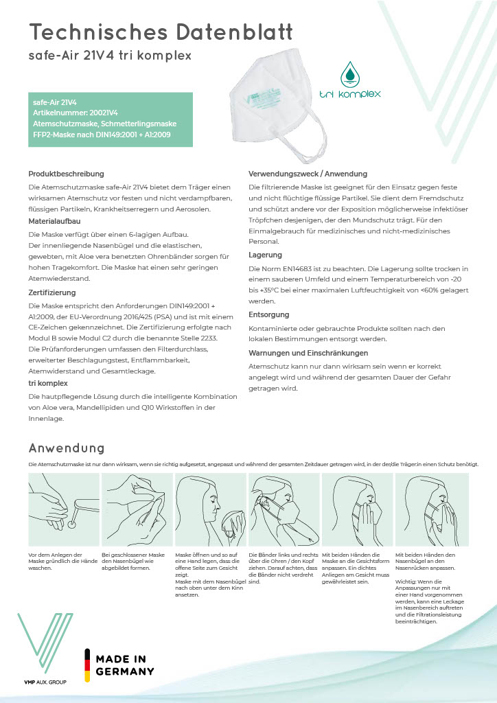 Einweg-Atemschutzmaske safe-Air FFP2 TRI-Komplex, NR EN 149